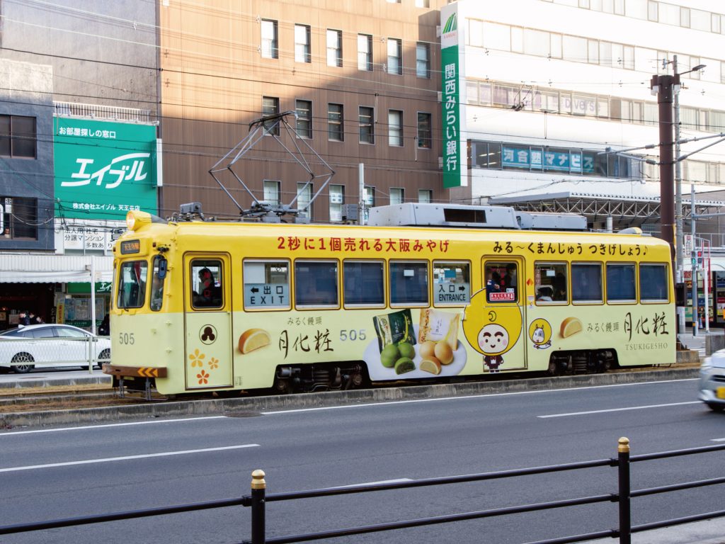 「阪堺電車」に月化粧ラッピングの路面電車が運行中です!|青木松風庵