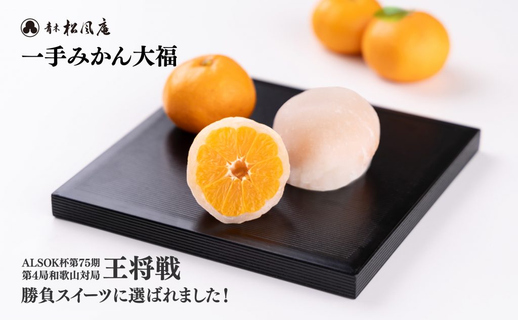 ALSOK杯第75期王将戦第4局和歌山対局の勝負スイーツに「一手みかん大福」が選ばれました。|青木松風庵