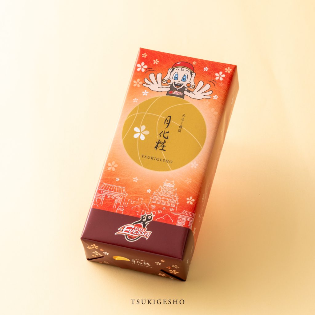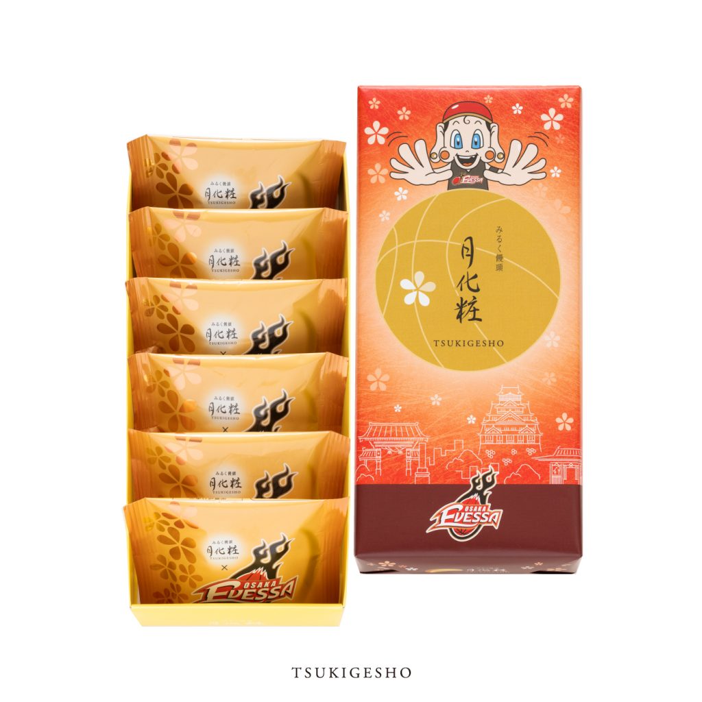 大阪エヴェッサのロゴや、まいどくんがデザインされたオシャレでかわいい包装です。コラボ月化粧を買って、大阪エヴェッサを応援しましょう!