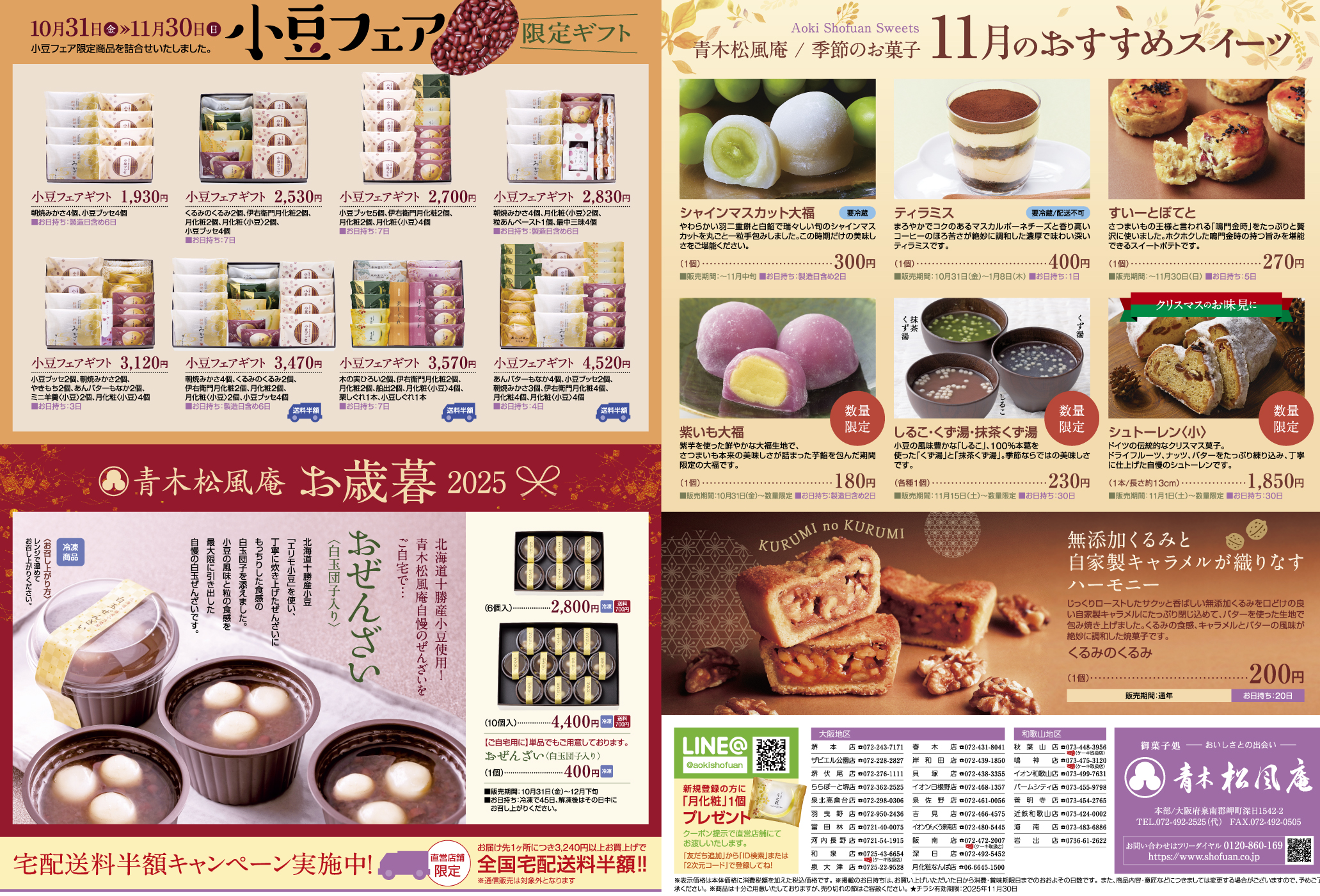 青木松風庵11月小豆フェア・季節のおすすめスイーツ