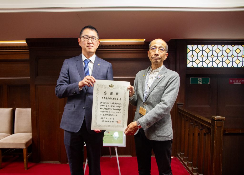 大阪府庁本館議場にて「大阪府への寄附に対する感謝状贈呈式」が行われ、吉村知事より感謝状を頂きました。